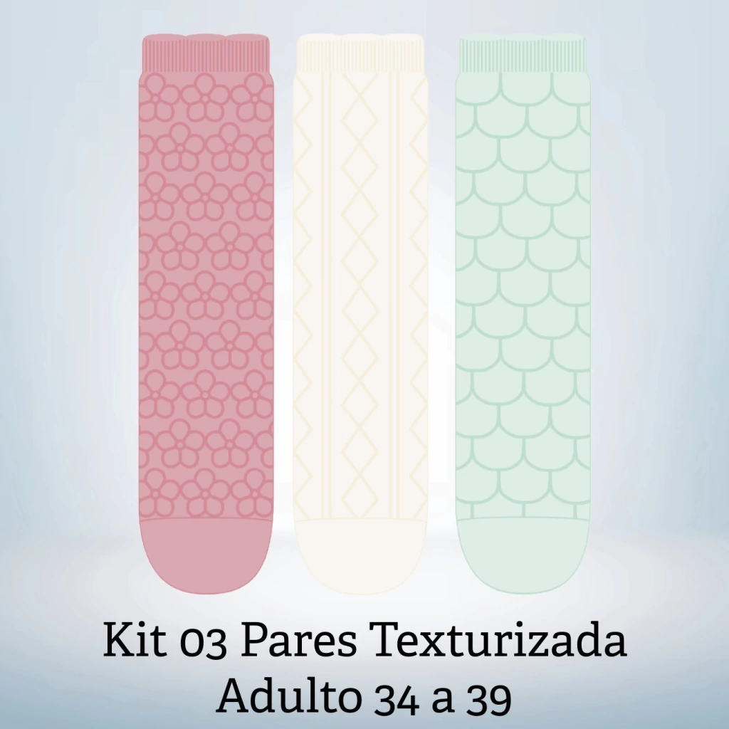O Kit com 03 Pares de Meia Soquete Adulto Feminina Texturizada da Cia da Meia é o lançamento ideal para quem busca conforto, estilo e qualidade no dia a dia. Cada kit contém 03 pares de meias, com 03 cores e texturas diferentes, permitindo versatilidade nas combinações e um toque moderno em qualquer look.