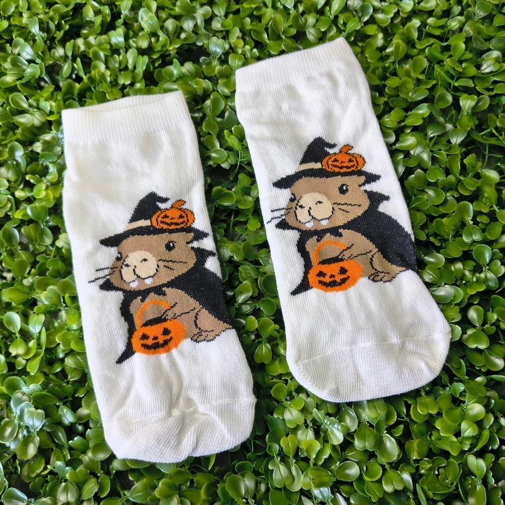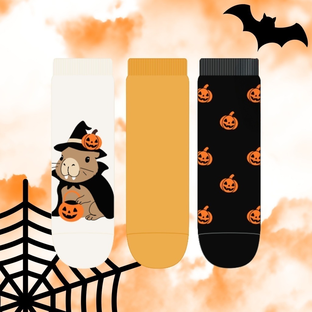 O Kit 03 Pares Soquete Meia Capivara Halloween Infantojuvenil/Adulto da Cia das Meias é uma opção divertida e prática para quem quer celebrar o clima de Halloween com estilo. Este kit contém 03 meias, sendo 02 estampadas com tema de Halloween e 01 lisa, ideal para compor looks festivos ou do dia a dia com um toque especial.