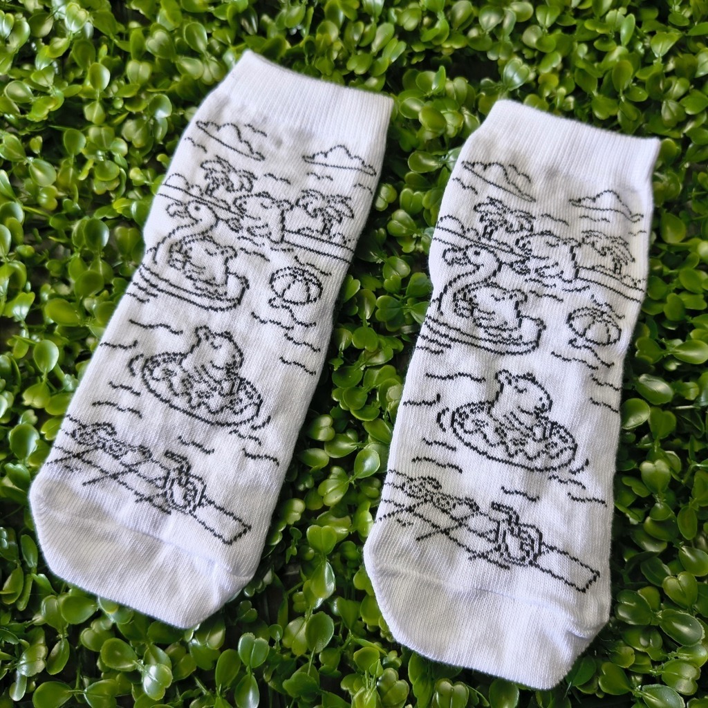 O Kit com 03 Pares de Meias Soquete Capivara para Colorir Infantil e Adulto é pura diversão e conforto para toda a família! Desenvolvido pela Cia das Meias, o kit contém 02 pares estampados com o tema Capivara e 01 par liso, permitindo combinações criativas e cheias de estilo.