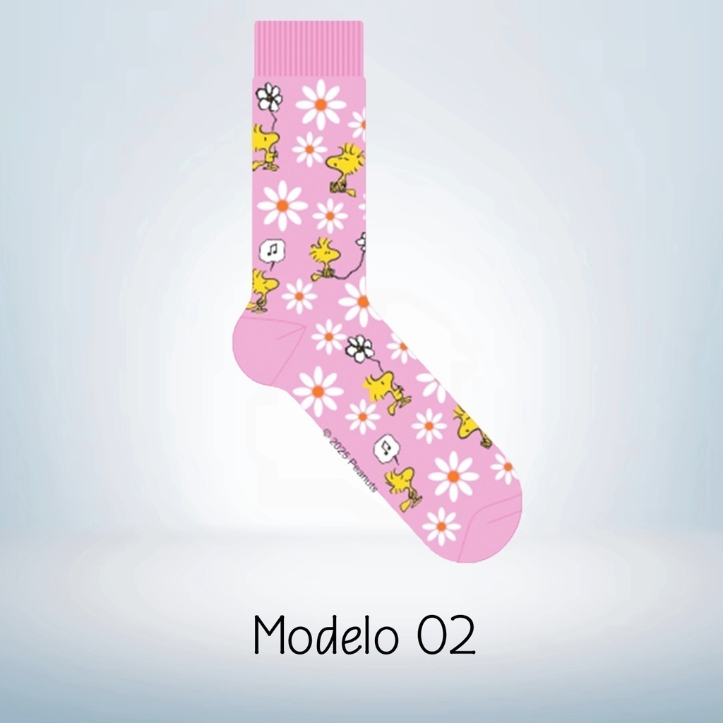 Cada par traz estampas divertidas do Snoopy, com acabamento e costura no mesmo tom. O anúncio refere-se a 01 par de meias, à escolha do cliente, no tamanho único (34 a 39), perfeito para infantojuvenil e adulto.