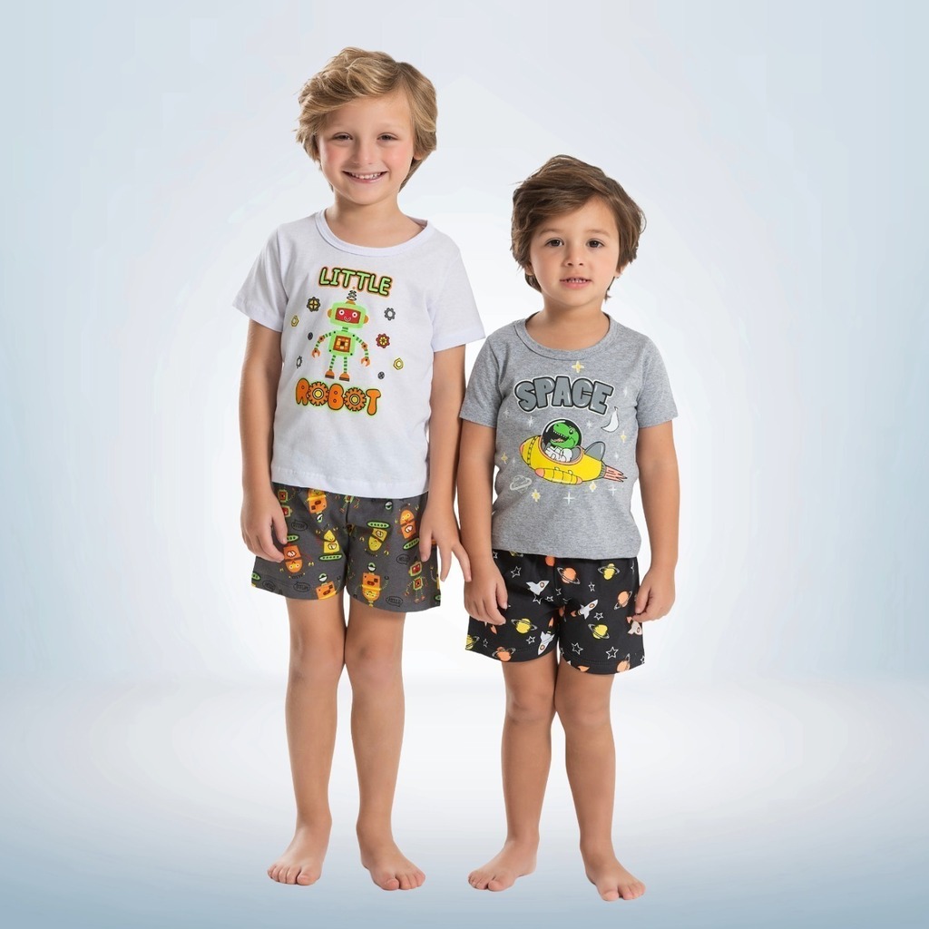 O Pijama Menino Infantil Meia Malha Estampa Divertida com Detalhes que Brilham no Escuro da marca Analê é ideal para noites cheias de conforto e imaginação. Produzido em 100% algodão meia malha, garante maciez, leveza e respirabilidade, cuidando da pele dos meninos durante o sono. Com estampas divertidas e detalhes que brilham no escuro, o pijama transforma a hora de dormir em um momento especial e lúdico.